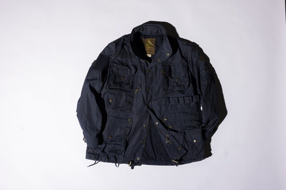 このジャケットは1970年代から作られており、稀に古着店でも見かけます。本物のサバイバルウエアなので狩猟用のツールポケットがやたらとついており、現代においては手ぶらで出かけたりするのにも便利。