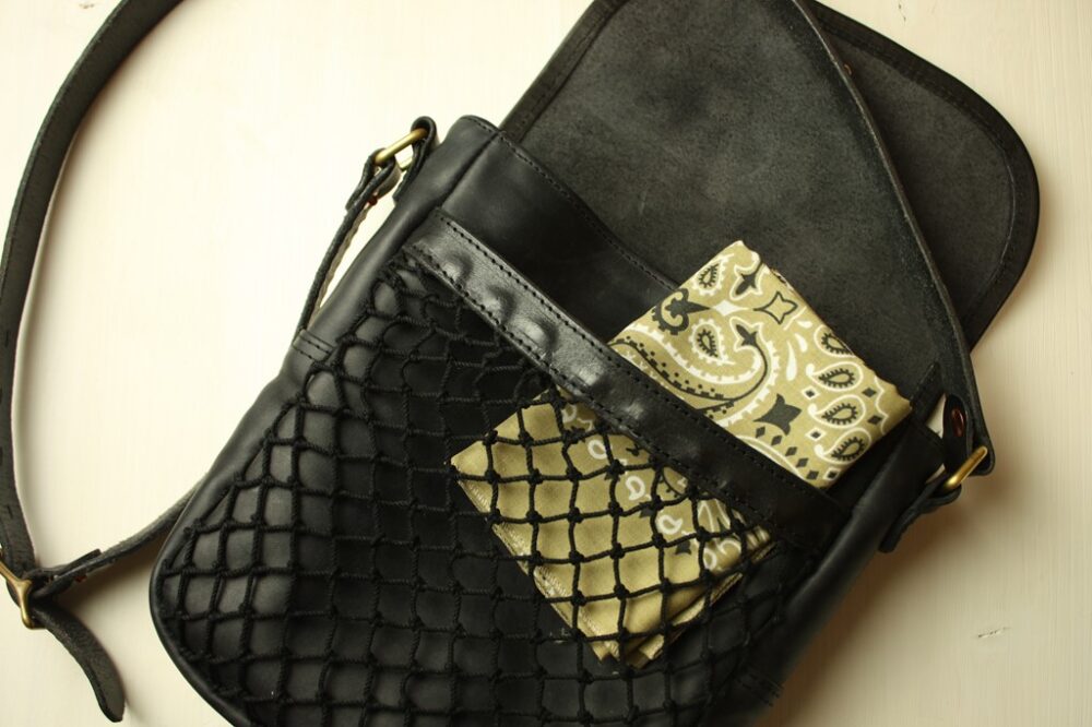 もちろんメッシュ部分も収納可能。バンダナを入れて持ち運んでも素敵です。