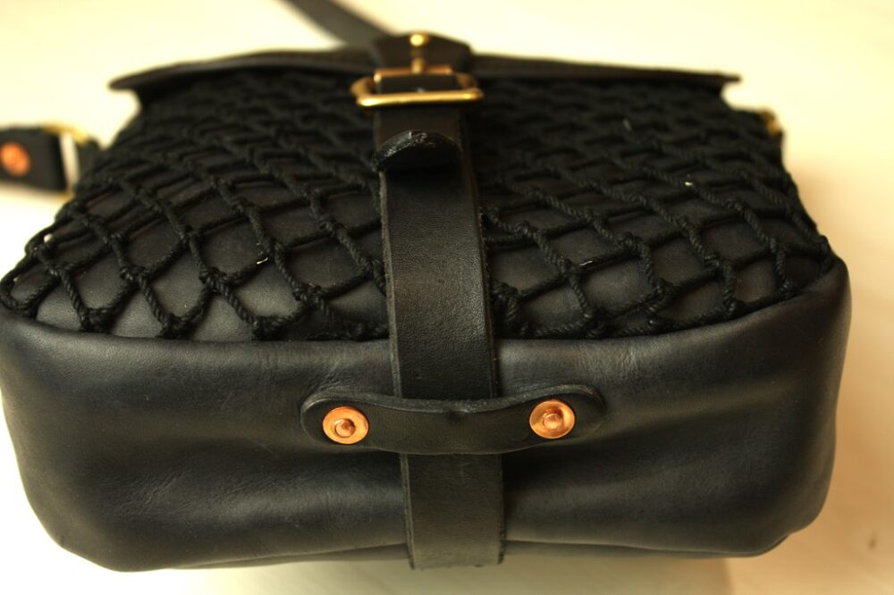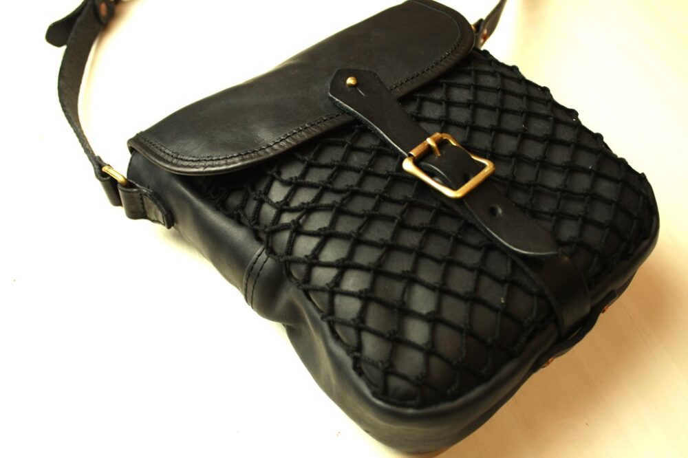 ヴィンテージや既製品のフィッシングバッグは、ほとんどがコットンキャンバス素材。フィッシングバッグのデザインでありながらもハイブランドのバッグのような上品な印象へとなりました。