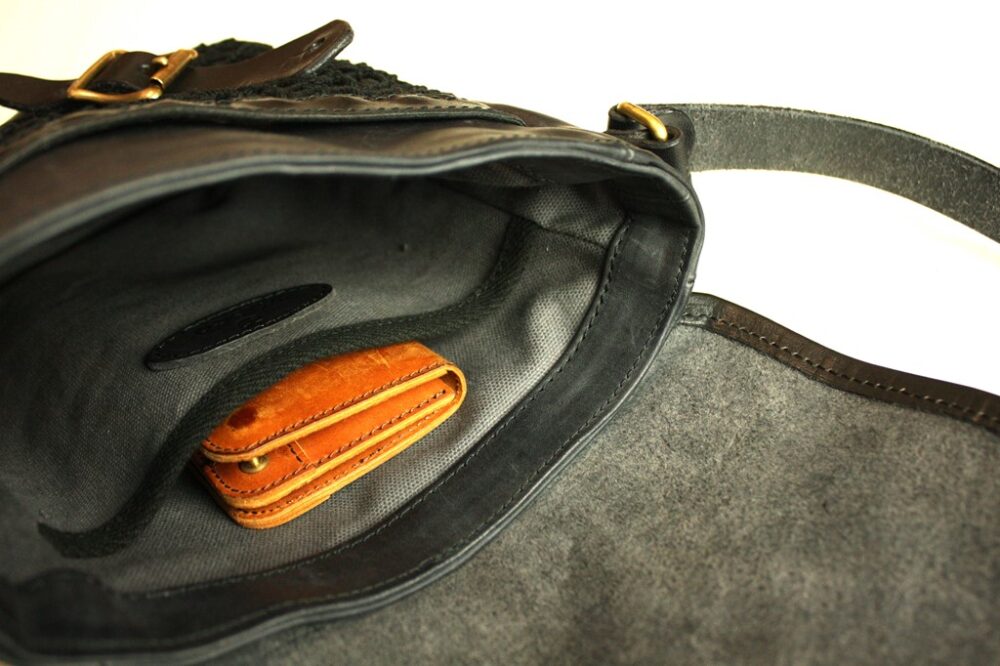 バッグを開いた部分。フラップ裏はバックスキン。