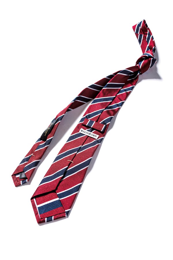 「いまのタイはほとんどが通常の結び方、いわゆるプレーンノットを想定して作られています。ダブルノットなどは、生地が薄くてノットがさまにならない時の、いわば非常用。いいタイを選んで、奇をてらわずにプレーンノットで結ぶ。アメトラにおいては、これが基本です」