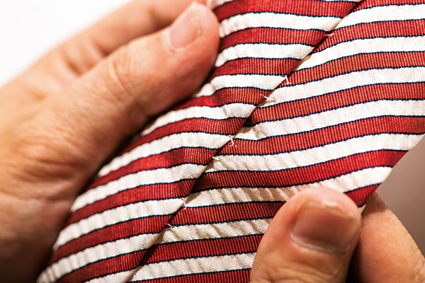 結んでいる状態が長く続けば、それだけ生地にストレスがかかるもの。だからこそ、「最低でも1度着用したタイは、1週間は置いてから着用してほしいです」と並木さん。また、「結ぶとき同様、解くときもゆっくり丁寧に。シュッ!と強引に解くのはダメですよ(笑)」