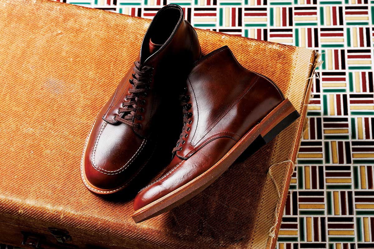 映画『インディ・ジョーンズ』は、秘宝を求めて考古学者が世界を駆け巡る冒険活劇。主人公を演じたハリソン・フォードの出で立ちといえば、牛追いムチ、ブリムの広い中折れ帽、レザージャケット、そしてこのインディブーツで決まり。劇中で使用されたオリジナルの1足は、ハリソン・フォードがオールデンに特別注文したというホーウィン社のオースチンカーフ製(写真はクロムエクセルレザー)。トゥルーバランスラストは、モディファイドラストと同じく矯正靴をベースにしたフットバランスシステムを採用している。ジョーンズ博士の活躍を可能にした大きな要因のひとつに挙げられるのが、この木型による履き心地の良さであることは間違いない。