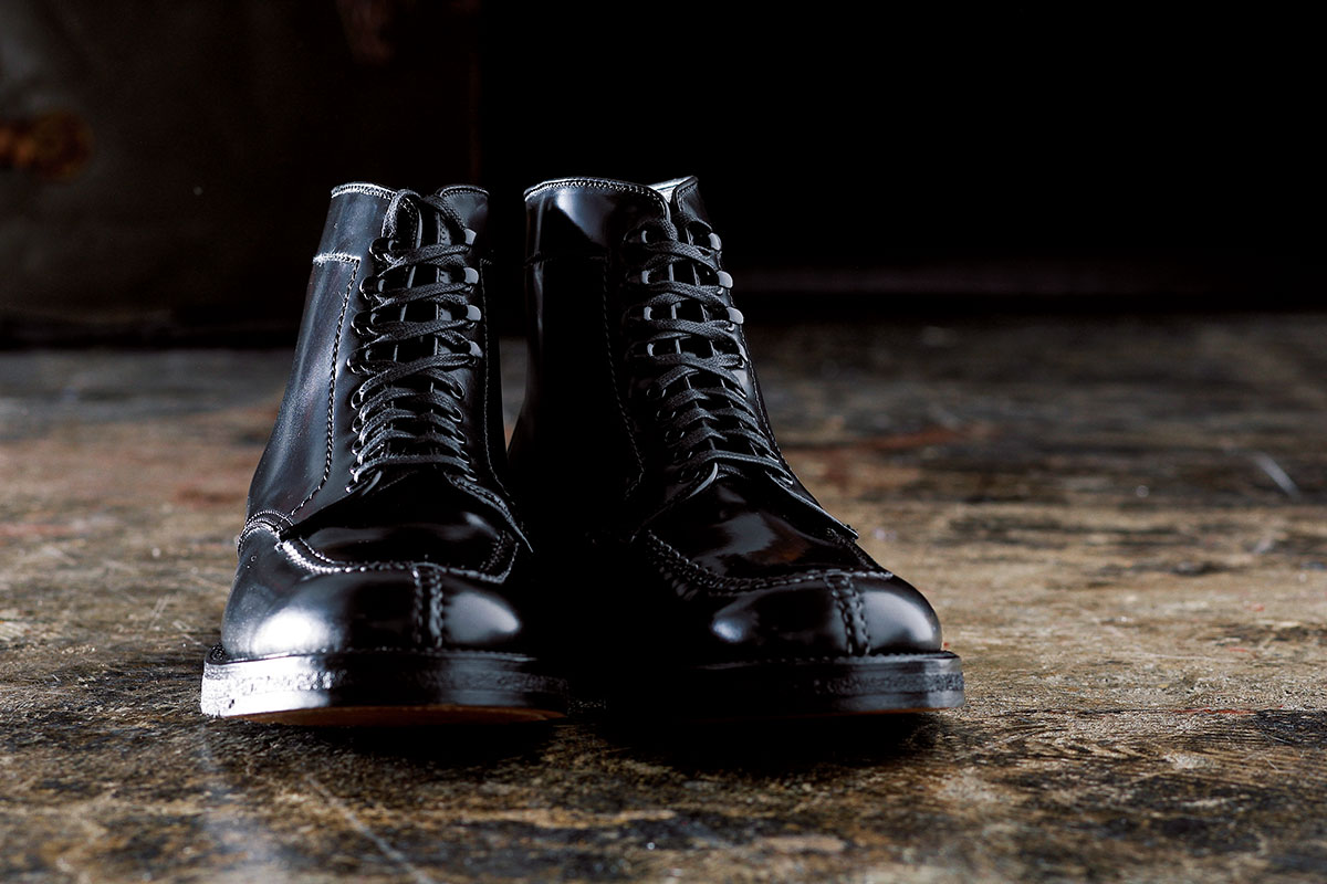 第二次大戦中に開発され、米軍の将校や一般兵士にドレスユニフォーム用の靴として支給されてきたラスト379X(通称ミリタリー)が使われているミリタリー由来のモデルがタンカーブーツだ。その後、一度は使用されなくなったラストだが、90年代中盤、日本におけるオールデンの総代理店であるラコタの強い要望によって379Xは復活を遂げ、1995年にタンカーブーツが誕生した。トゥ部分に施されているスキンステッチは熟練職人による手縫いで、一針一針に魂が込められている。アッパーの隆起はその証だ。