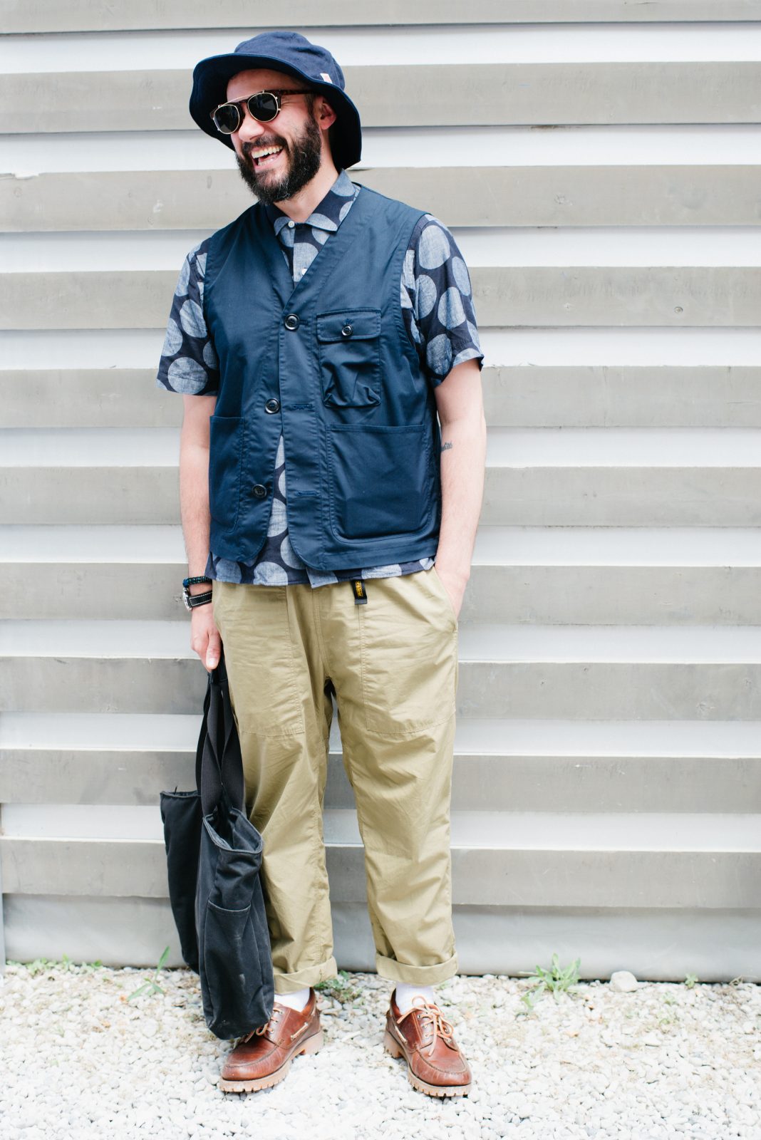 坂田さん:ベストはホットなアイテムですよね。この人のようにロイヤルネイビーやワークのベストの着こなしは注目です。