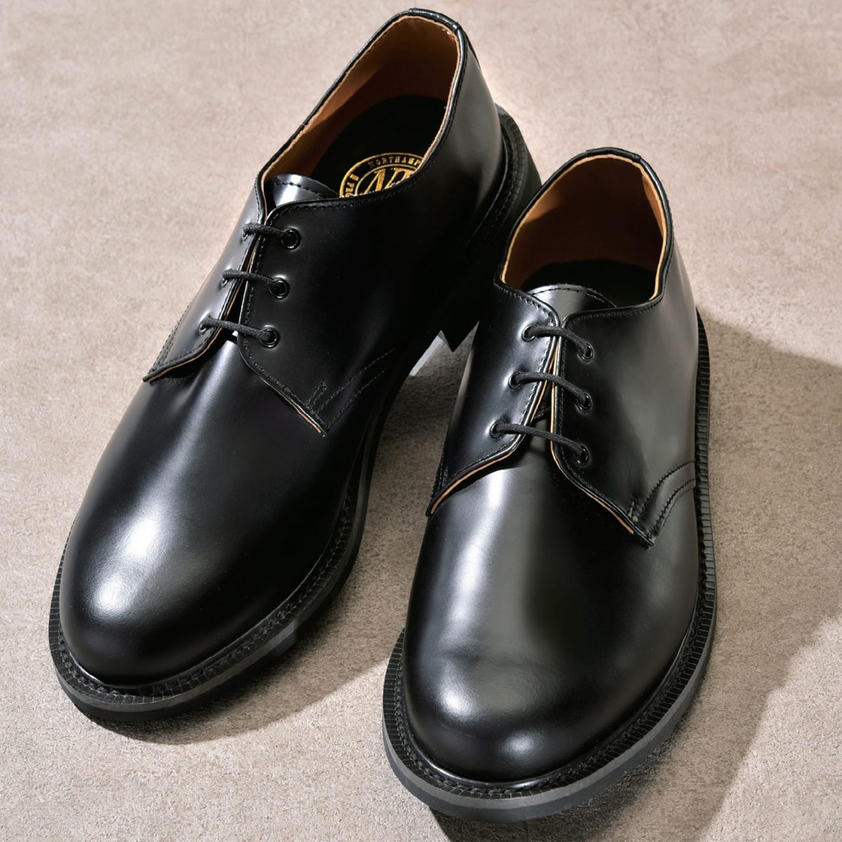 長めのノーズで甲の高さを抑えつつも、トゥのラウンドがチャームポイントとなっているプレーントゥの外羽根シューズ。シンプルなデザインであるがゆえ、ハイシャインレザーの程よい光沢感が引き立たされるのが魅力。どんなカジュアルパンツの足元でもさりげない光沢でコーディネイトを引き締める、頼れる1足になること間違いなし! 3万7800円