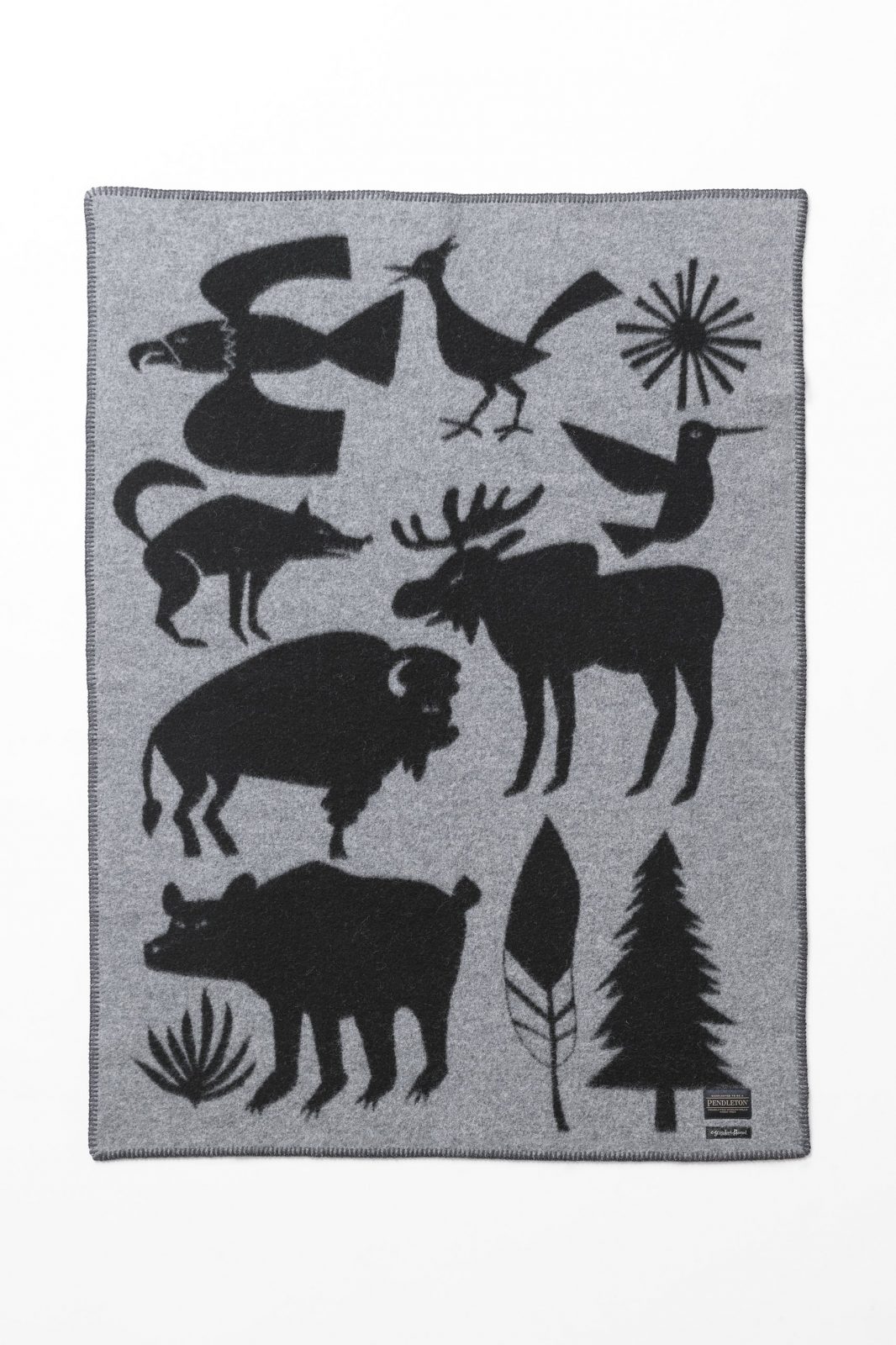 ロードランナーやバイソン、ベアーなどネイティブアメリカンと深く関わる動物たちをピースフルに描いたデザインは、ネイティブ柄や縞柄の印象が強い、これまでのペンドルトンとは全く異なる一枚に。コラボとはかくあるべき! と声を上げたくなるような、両者の魅力が相乗的にアップした最高の出来栄えですよね。ペンドルトンと花井祐介のタグが並んだダブルネームで、しかも特製ボックス付きのコレクタブルな特別仕様は嬉しすぎる!