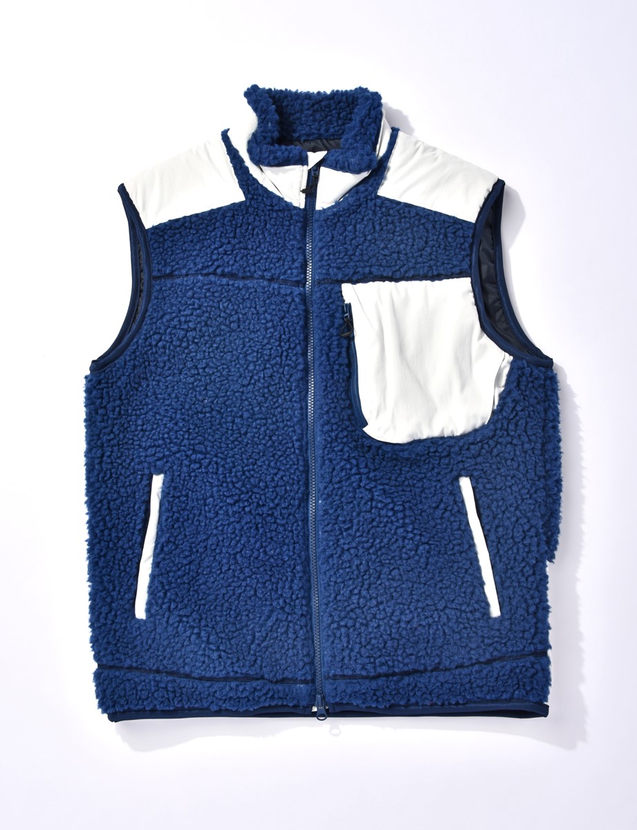 毛足の長いボアフリースにホワイトの切り替えが軽妙に、クリーンな佇まい。裏地には独自に開発した発熱保温素材のヒートナビを採用。1万4000円+税(デサントブラン 代官山☎03-6416-5989)