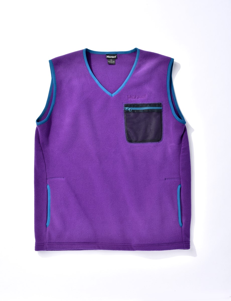通気性、保温性、軽量性に優れるポーラテック®200を使用している[1990フリースベスト]。1990年当時の色味をリバイバル。9800円+税(デサントジャパンお客様相談室70120-46-0310)