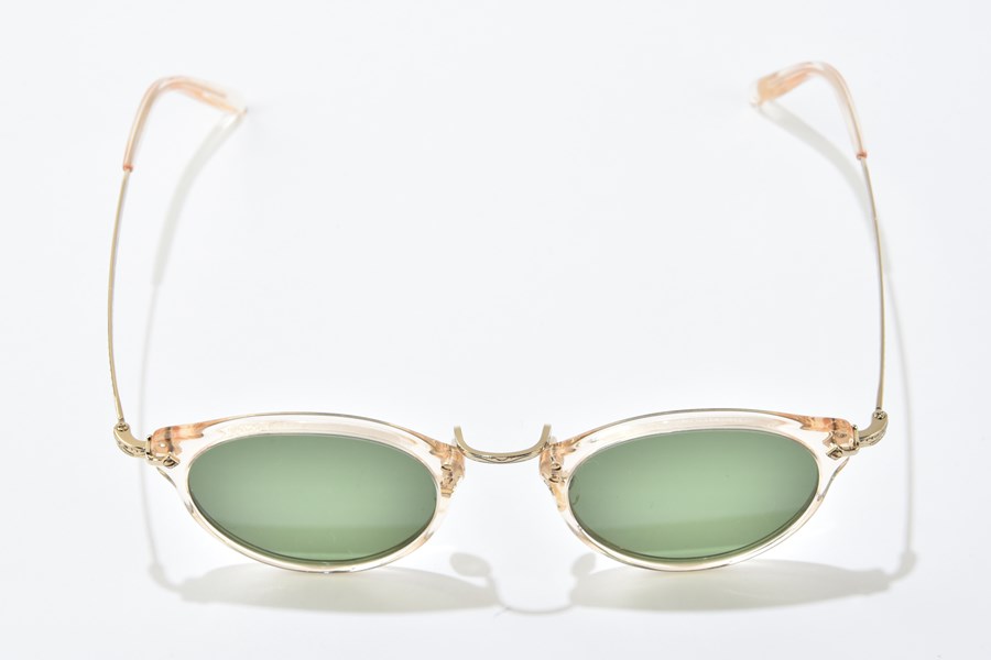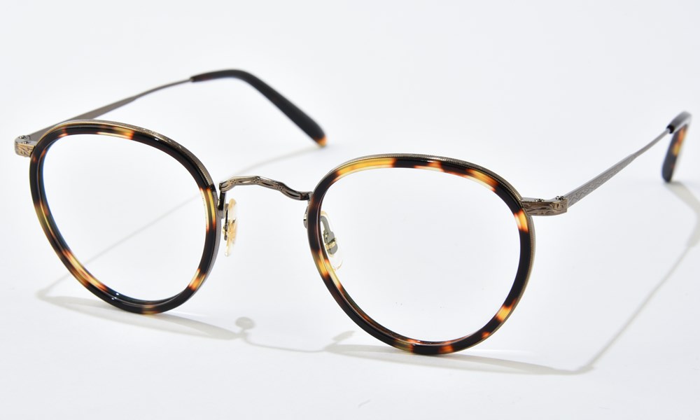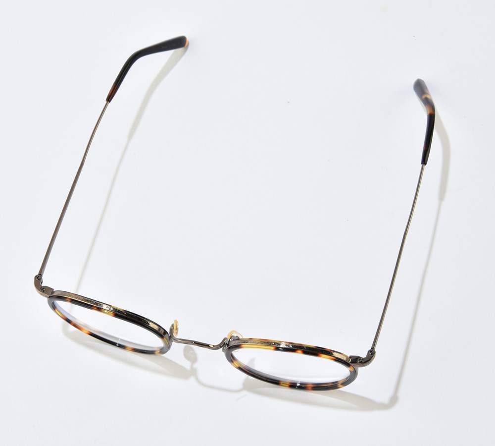 1980年代後半に登場したクラシカルなスタイル。メタルパーツにはきれいな彫金でデザインされ、またメタルリムの内側にプラスチックリムをはさみこむことで、通常のメタルボストンフレームには出せない存在感を演出してくれる。3万9600円(税込み)