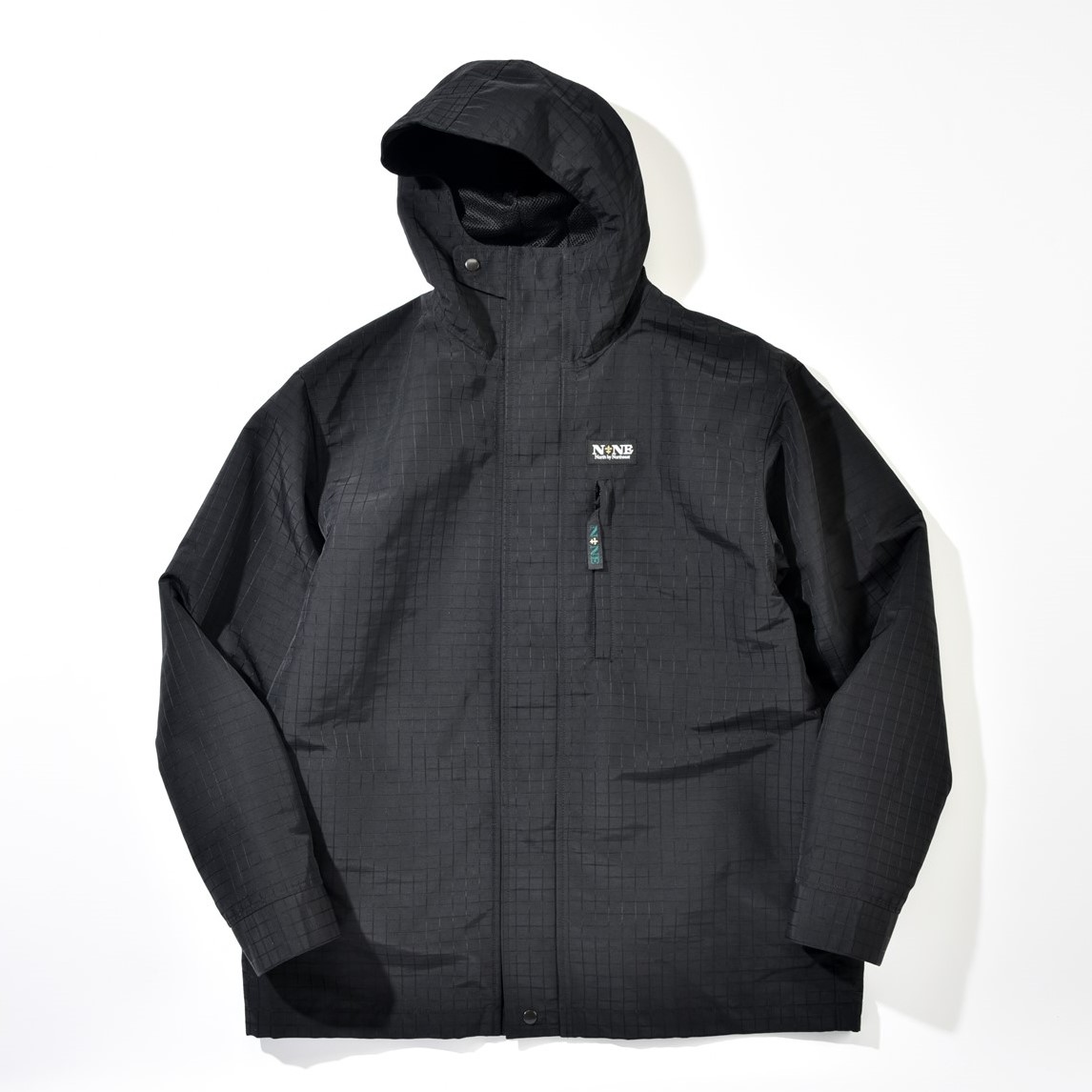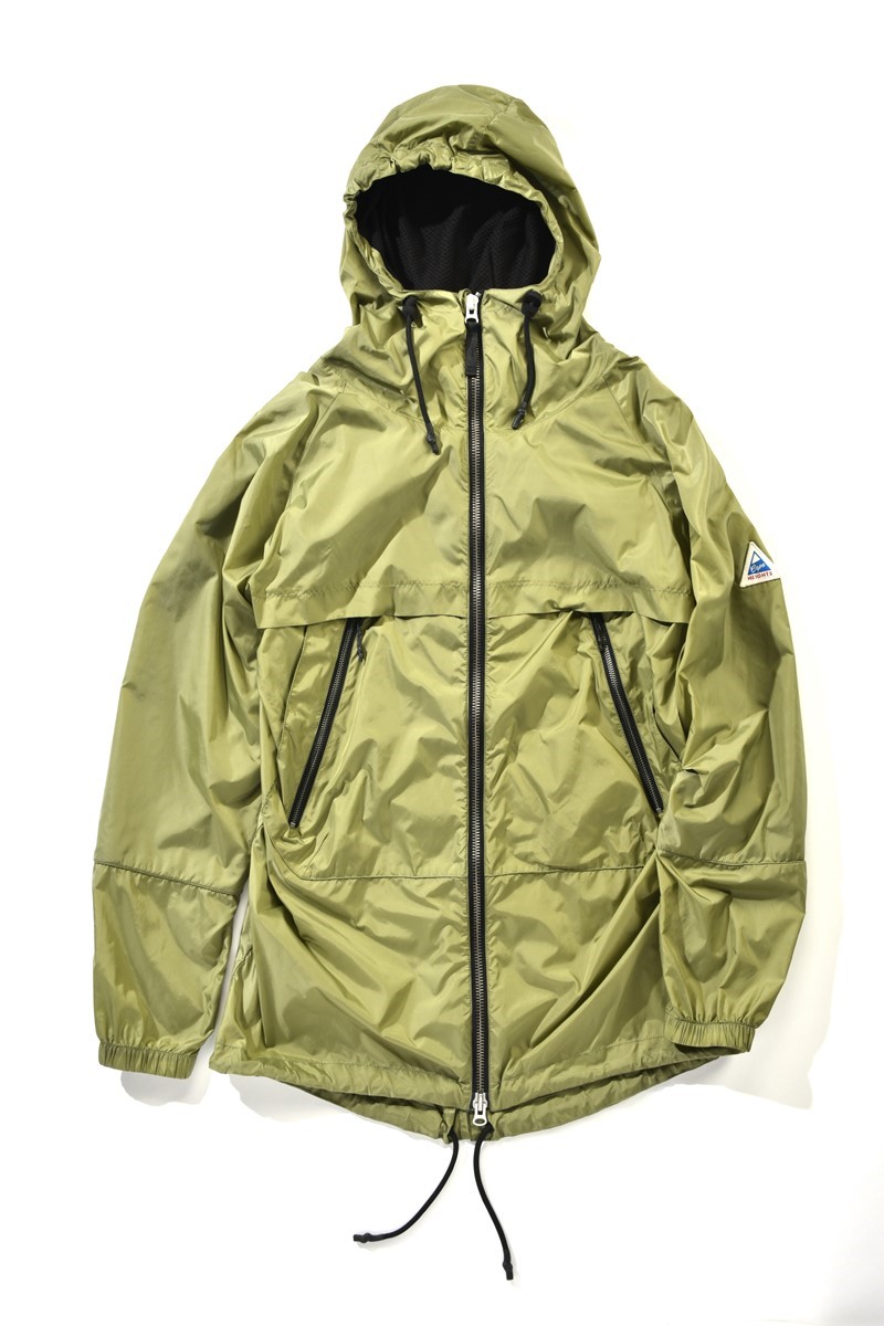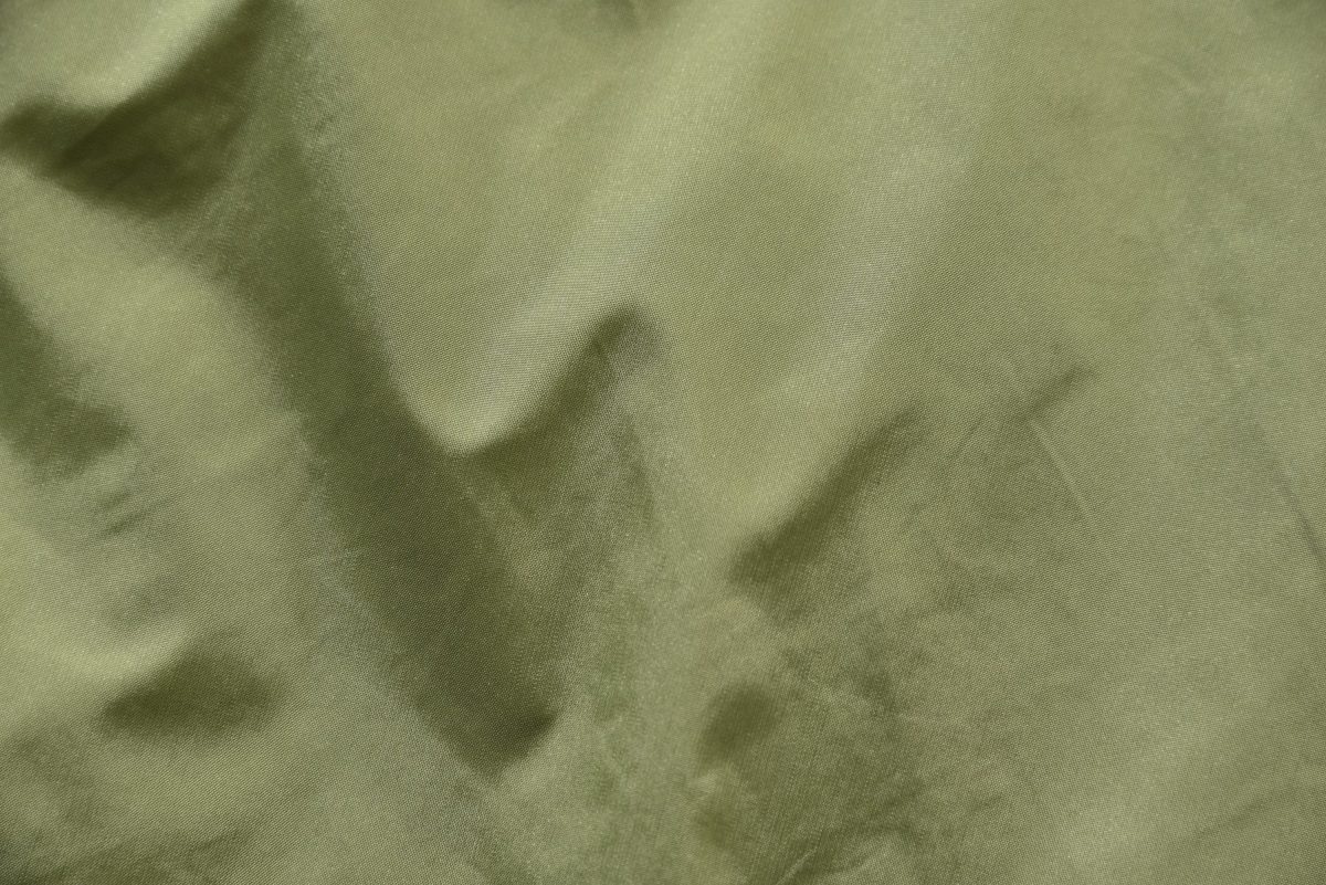 ʼ80~90年代に使用していたビッグリップストップを採用。通常のリップストップに比べ、ひとつひとつの格子が大きく、絶妙なニュアンスを生む。もちろん高い撥水性と強度を備える。さらに、ボタンを閉めてフードをかぶれば、深く顔を覆うことができ、防寒性に優れている。アウトドアをルーツに持つブランドならでは。