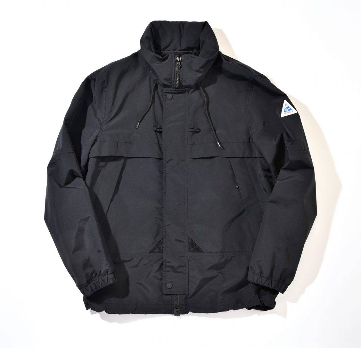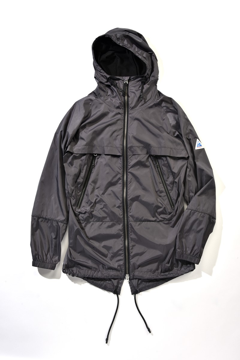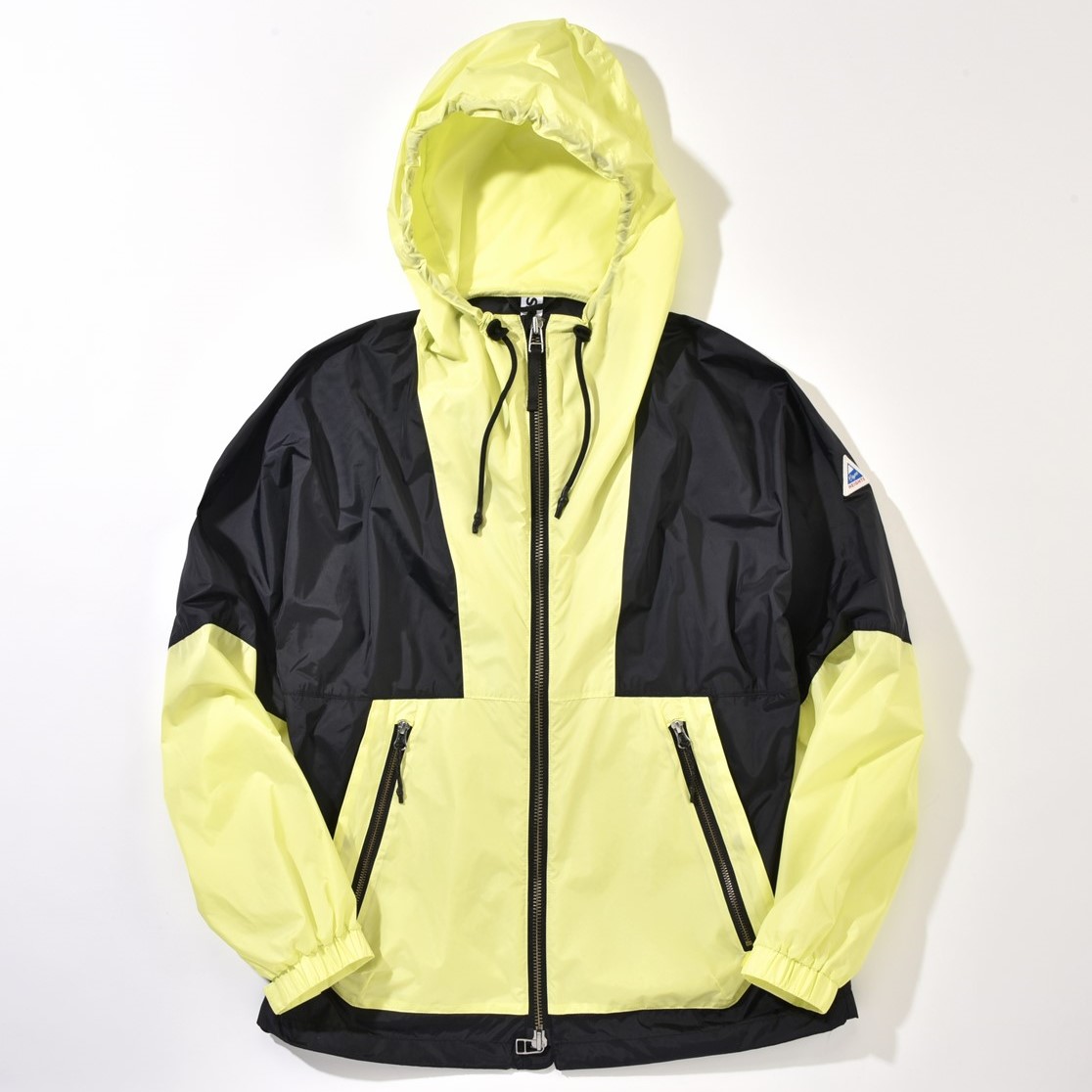 今シーズンの新作。ʼ90年代のヨットジャケットがモチーフになっており、前面についた救命胴衣を固定するためのループにその意匠が見てとれる。スタンドカラーの中にはフードが収納。3万5200円