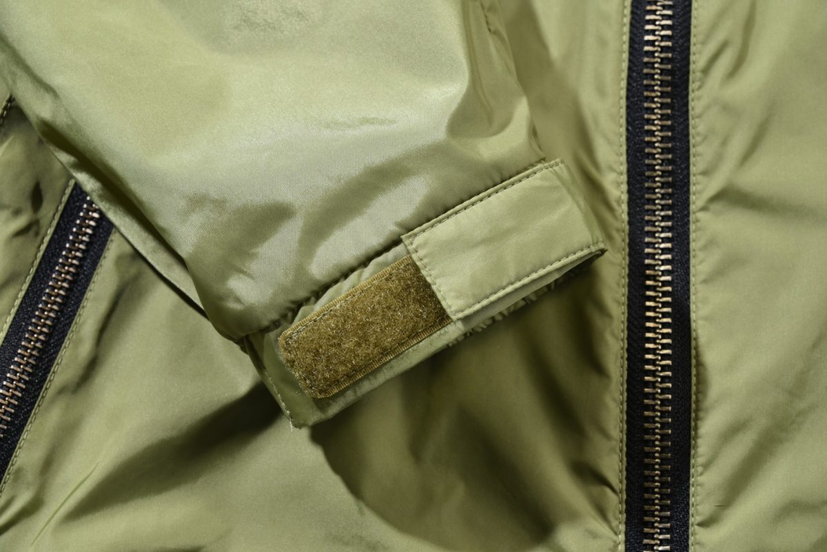 他のモデルにも見られる特徴だが、裾にはドローコードが、袖にはアジャスターが配されており、防風性を高めてくれる。