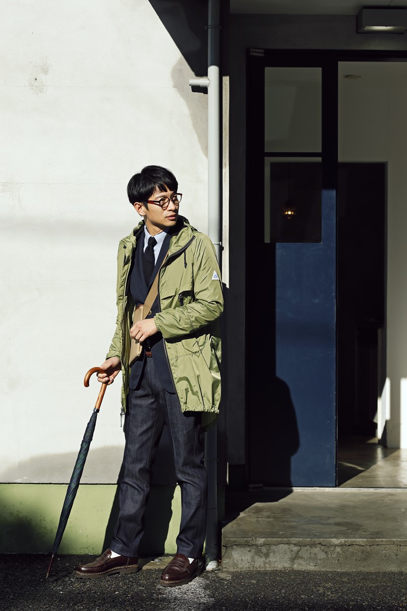 ビジネスシーンでもカジュアルにお洒落を楽しみたいのであれば、このアウターは適任だ。ジャケパンスタイルに馴染みながらも、リップストップが生み出す独特のニュアンスでさり気ない主張を。