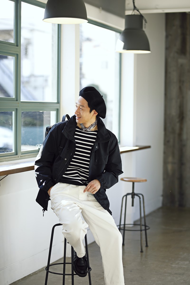 「ノース・バイ・ノースイースト」からは、オンオフで活躍間違いなしのアウターと、着回しが自由自在なジャケットの2アイテムを使った、5つのコーディネイトを紹介しよう。