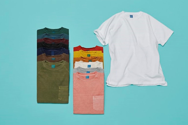 「ショートスリーブヘビーラグランポケットTシャツ」に使用されている生地、シルエット、デザインの3つのすべてが実に頼もしい。まず、生地に9オンスのヘビージャージーを使うことで、乳首の透けや浮き上がりを防止。続いて、適度にゆとりのあるシルエットにより、ぽっこり出っ張った腹部をカバー。身幅に余裕をもたせた着丈は、すっきりめのバランスが絶妙だ。最後に胸に配したポケットで周囲の視線が腹部に向かうのをそらしてくれるという特典付き。ラグランスリーブなので動きやすいのも利点。どこまでも安心できるTシャツなのだ。