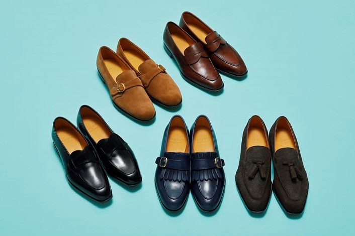 その真骨頂ともいえるのが、ローファータイプのシューズ。スニーカーほどくだけてないが、内羽根や外羽根の紐靴ほど堅くない。その柔らかな存在感こそ、まさに「幽玄」を体現している。左上のモンクストラップ付きにはスウェード、右下のタッセル付きにはスコッチグレインレザー、その他の3足にはキップレザーを使っているが、どれもが厳選したイタリア産の素材だ。日本人の足がスマートにおさまるようにイチから起こしたスリッポン専用ラストを採用している。