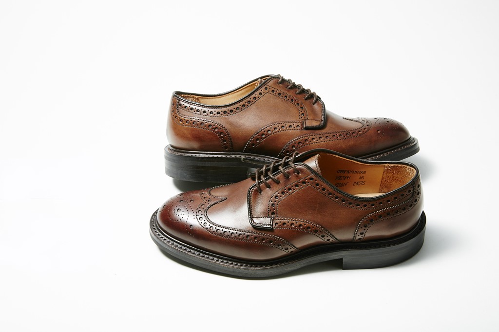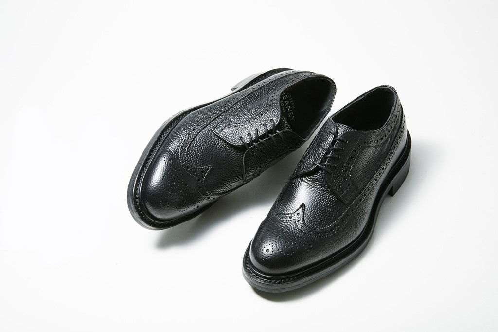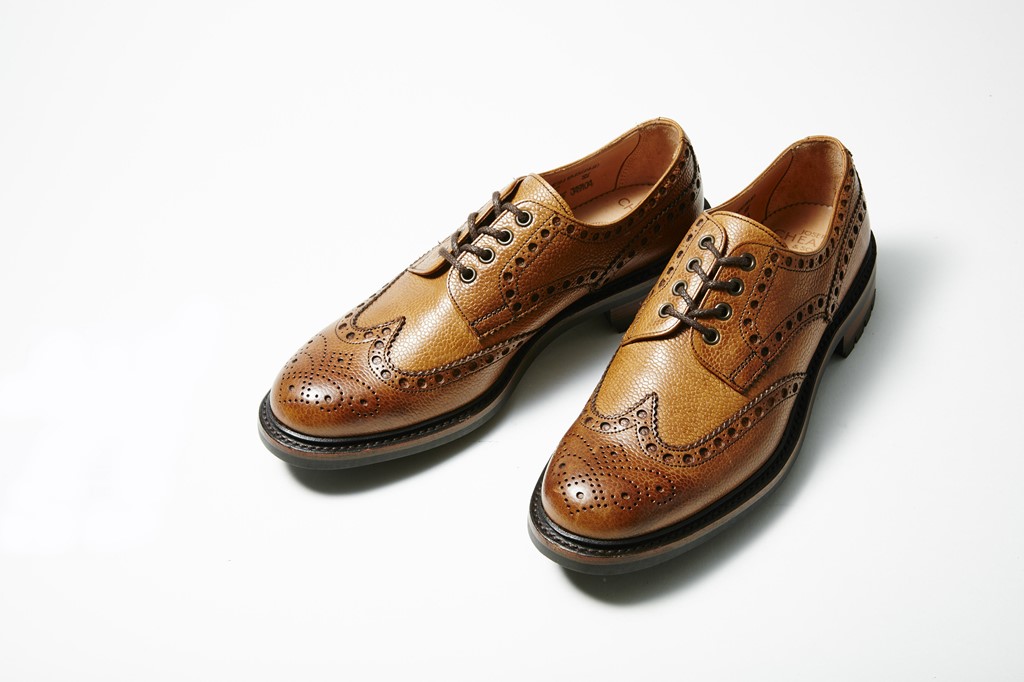 大粒のシボが特徴のグレインレザーに、高いグリップ力を誇るコマンドソールをセット。大きなメダリオンも効いて、英国紳士のカントリースタイルを彷彿とさせるウイングチップモデルが完成した。