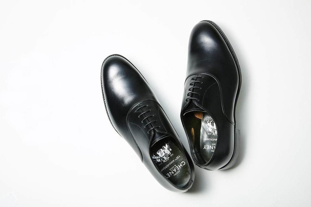 カーフ素材の内羽根式ストレートチップは、職業を問わずマストハブな1足。2011年に125周年を迎えたチーニーが新たに開発したラスト125は、ヒール部分が小ぶりで日本人にも合いやすい。