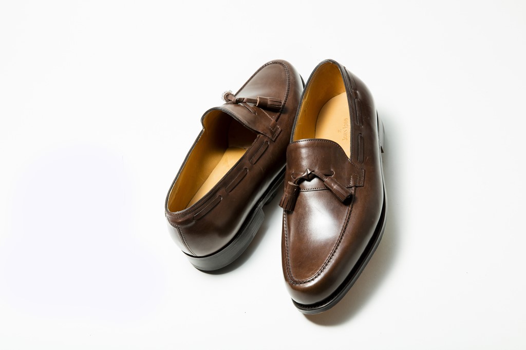 ハンドソーンによるエプロンがジョン ロブの技術の高さを感じさせてくれるタッセルローファー。新しい4515ラストを採用しつつ、定番ローファー「ロペス」のような履き心地を実現。ややロングノーズになっているので、よりエレガントにアピールすることができる。