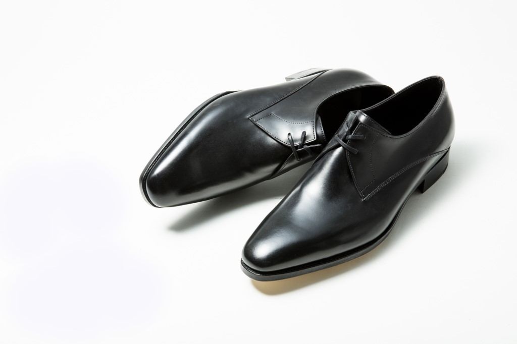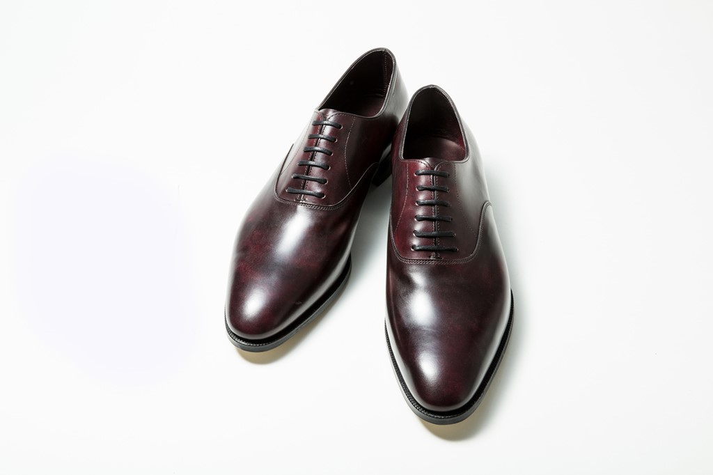 最上位の“プレステージライン” に属する一品。アウトソールの土踏まず部分を絞ることで、履いた時に靴がスマートに見えるよう工夫されたベヴェルドウエストなど、ビスポークの要素をふんだんに。