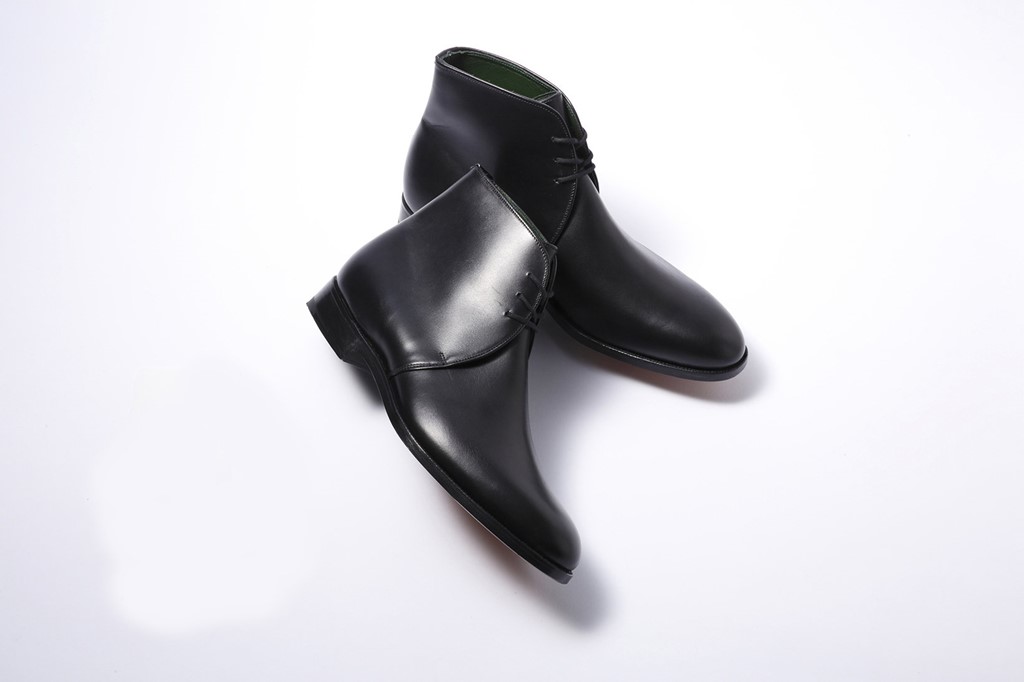 チャッカブーツよりも丈が長くて、ひと味違った雰囲気を楽しむことができるジョージブーツ。羽根のラインがきれいな弧を描いており、端正な顔立ちになっている。ボックスカーフのアッパーにシングルレザーソールを備える。Ⓑ