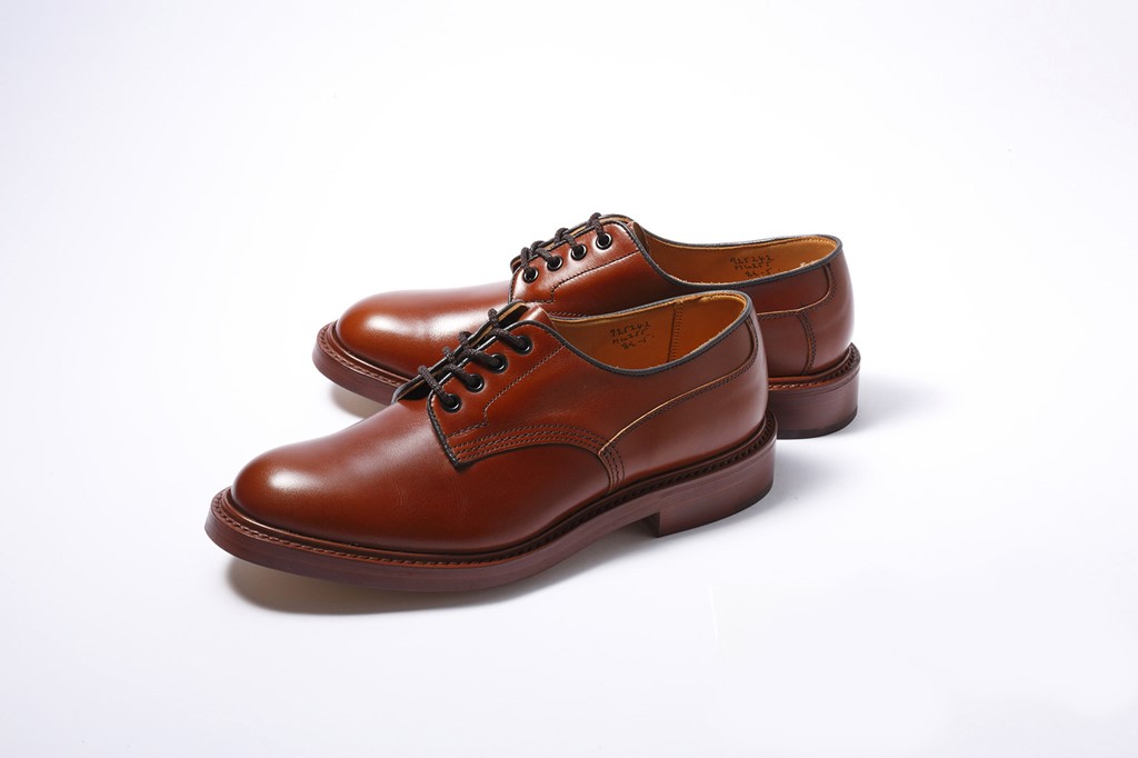 シンプルな4アイレットプレーントゥダービー。トリッカーズと言えばブローグの印象が強いが、シンプルなプレーントゥも定番として愛されている。ブローグシューズにも使われているラスト4444を採用して、ダブルレザーソールをセットした。Ⓑ
