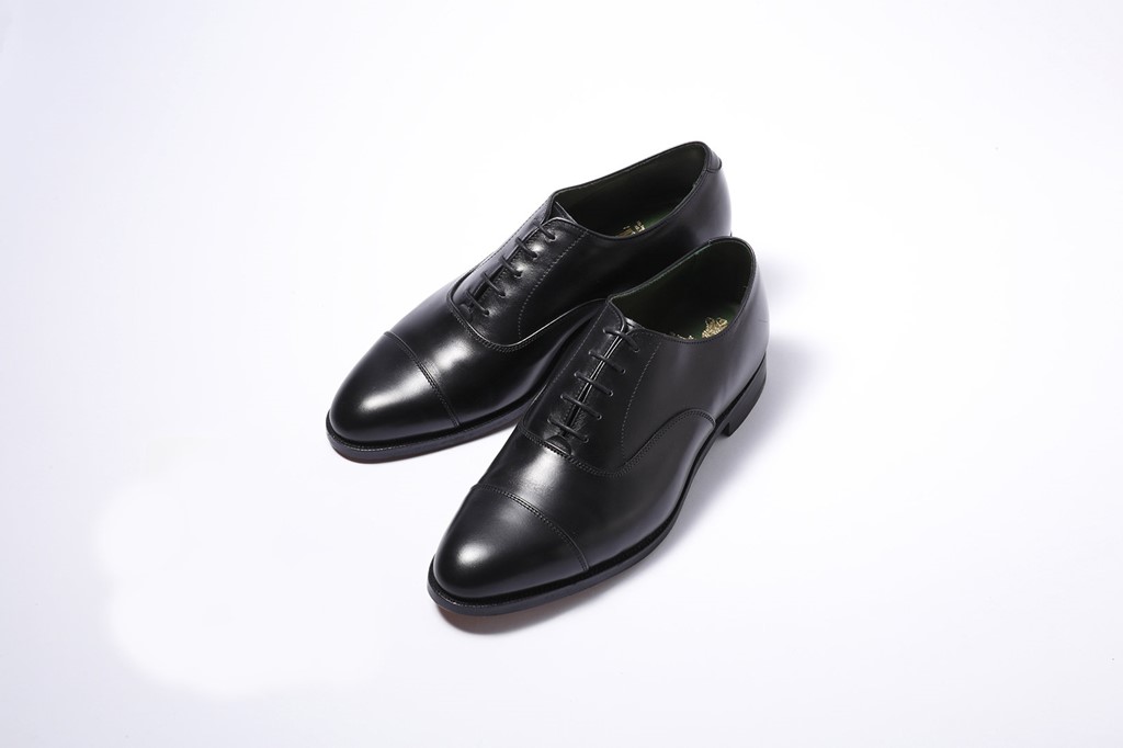 「デュークコレクション」の一足。日中の最礼装に使えるブラックカーフのキャップトゥ。フォーマル顔のトリッカーズだ。2004年に誕生した、「トレーディングポスト」オリジナルのドレス用ラストを使用して製作されている。Ⓑ