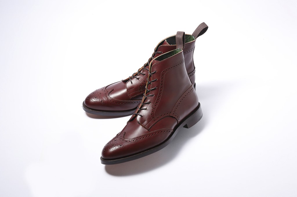 こちらはデュークコレクションのもの。カントリーブーツよりもシャープでエレガントな見た目になっているがダブルソール、フルウェルトといったトリッカーズらしさを残して、程よいバランスに。華やかさと渋さを両得する大人の色、バーガンディを採用した。Ⓑ