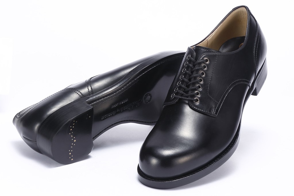 クラシックラインの1足。ベーシックになり過ぎないように、つま先のシルエットにボリュームを持たせた。アウトソールはレザーだが、通常よりもオイルを染み込ませたフレックスソールは足馴染みが良い。使用している素材は国産のコードバン。