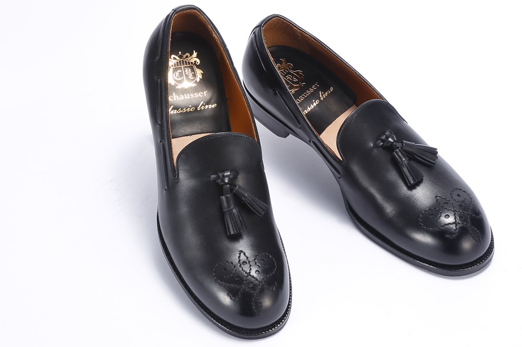 クラシックラインのタッセルスリッポン。丸みを帯び、ラウンドしたつま先がファッショナブルで、仕上げが美しい1足。グッドイヤーウェルテッド製法で作られ、色はブラック以外に、もう1色バーガンディーも用意されている。