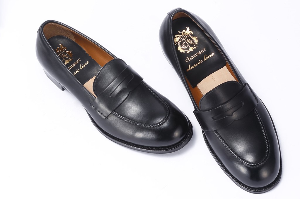 クラシックラインの代表作であるローファー。クラシックラインの特徴であるトゥ先のシルエットを活かすためにモカのバランスを変えてある。グッドイヤーウェルテッド製法で、ブラック、ブラウン、ナチュラルの3色展開している。