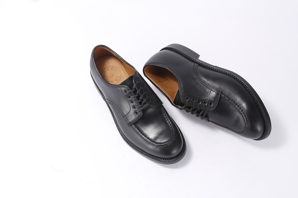 アッパーにアメリカのホーウィン社製のクロムエクセルを使用したモックトゥ。手仕事によるモカシン縫いが際立つほど美しくソールはシングルレザーを採用。これ以外に、バーガンディとナチュラルの色展開。