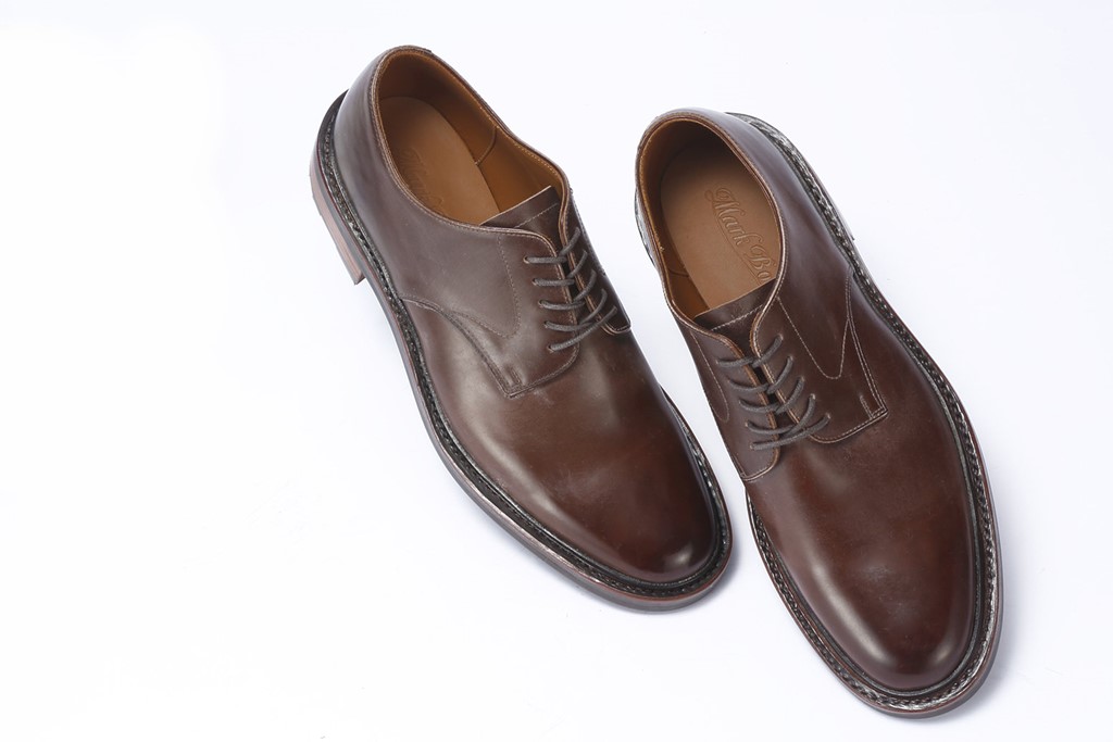 同じく「プレーントゥ」より、こちらはダークブラウンのコードバン素材を使用。写真上のクロムエクセルレザー仕様のモデル同様のプラット式グッドイヤーウェルト製法を用いながらも、コードバン独特の経年変化と艶感が味わえる。