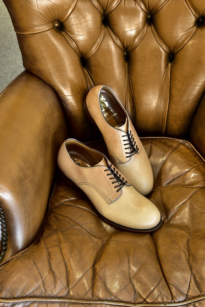 伝統的なデザインをベースにしながらも、革の表情やフォルムにもどこか温かみが感じられるのが「ショセ」の特徴。1930〜50年代に描かれたアメリカの画家ノーマン・ロックウェルの絵に影響を受けたと前田氏は語る。デザインにアメリカの昔懐かしい匂いが薫るのはそのため。東京・恵比寿に旗艦店を構え、海外でも販売されるほど、多くのファンを持つ靴だ。