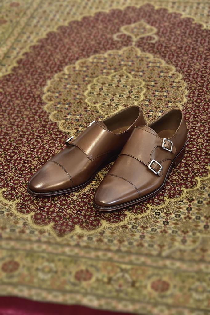 写真は人気急上昇のダブルモンクストラップ。稀代の伊達男であるウィンザー公が履いたことでも知られるデザイン。グッドイヤーウェルテッド製法で、既成靴の領域を超えた立体的なラストが生み出す、極上のフィット感も魅力のひとつといえる。