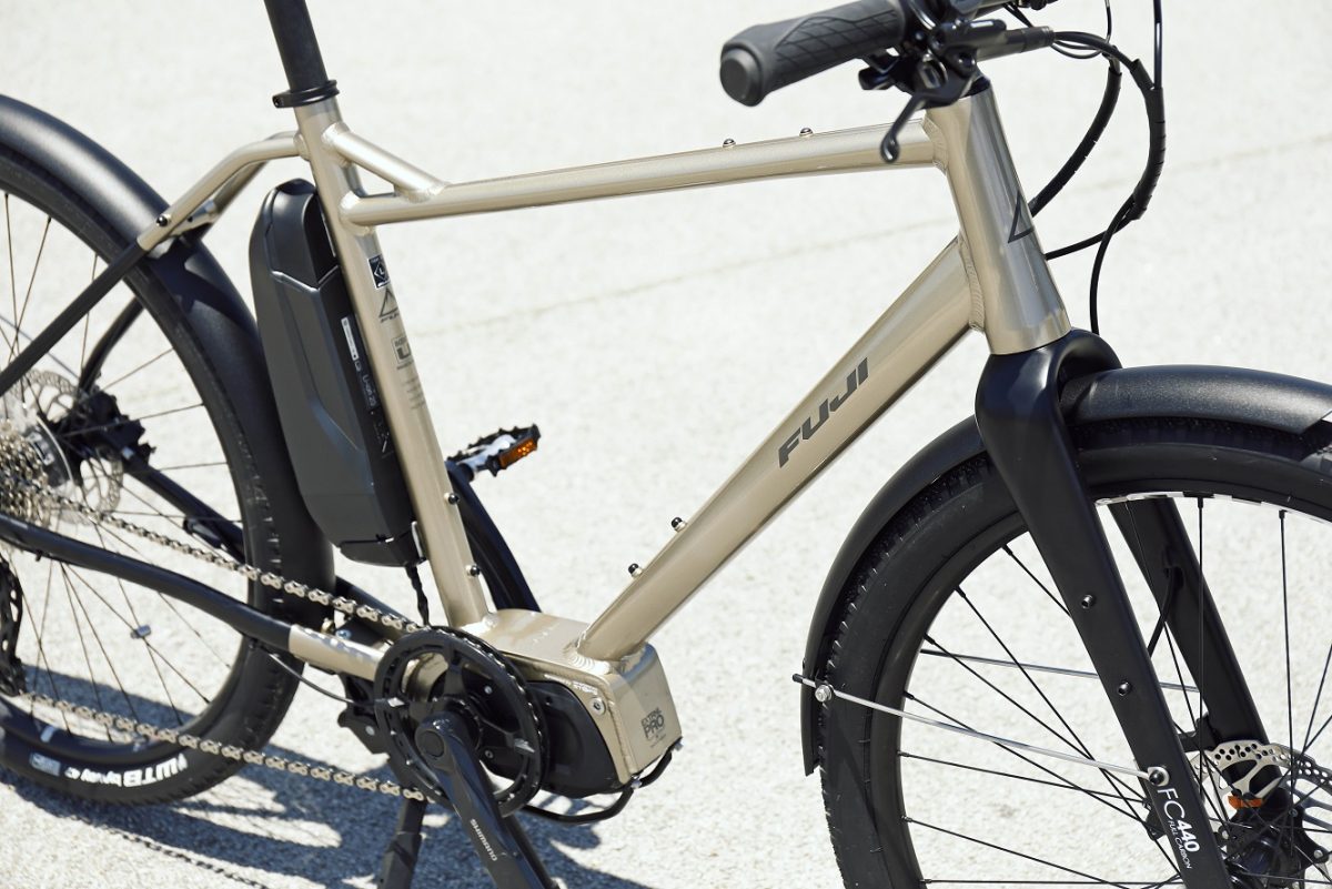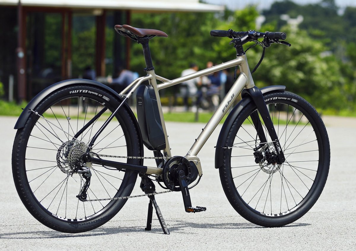 お洒落して出かけるせっかくの休日、どうせなら自転車もスタイリッシュなほうが気分も格段に上がるもの。シリーズのなかでも最小かつ最軽量のユニット「シマノ ステップス E5080」を採用し、シンプル&スマートなルックスを実現したのが、このフジのファーポイントだ。普段通りのスタイリングにも違和感なく溶け込む。