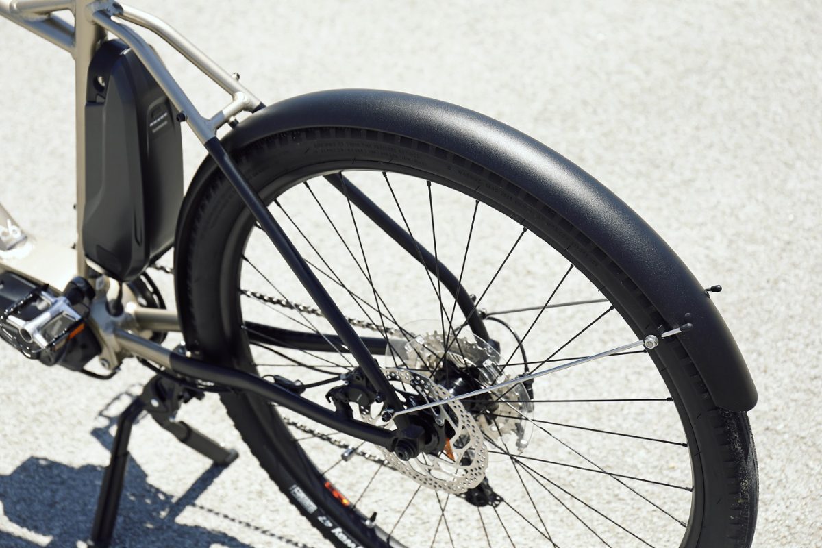ファーポイントは、前後に泥除けを標準装備しているのもうれしい。「お気に入りの休日服に、泥がついて落ち込む」なんてことを心配せずにツーリングを楽しむことができる。また、太めのタイヤをセレクトしているので、段差の多い街乗りでもラクに走れる。