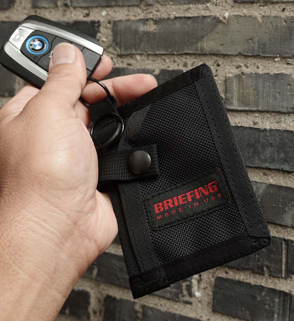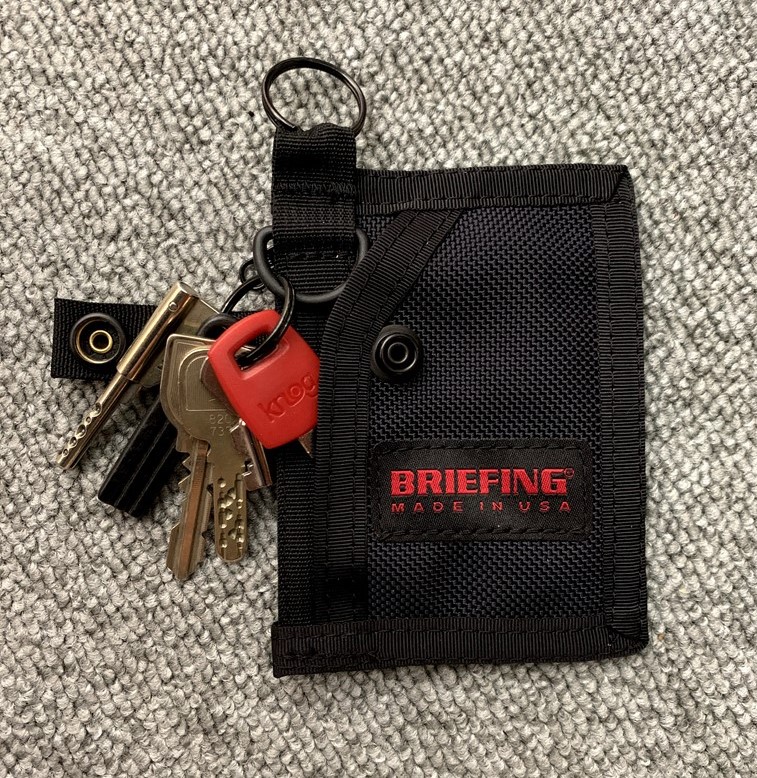 泣く子もダマる「BRIEFING(ブリーフィング)」さんに、クルマ用キーケースでありながら、家のカギも収納できて、さらにはクレジットカードや交通系カードなども数枚収納可能で、しかもお札や小銭も入れられちゃう……つまりは、「ちょっとしたお出掛けはコレ一つ持っていけばすべて対応可能なヤツ、作って下さい!」とお願いしてできたのがコイツです。