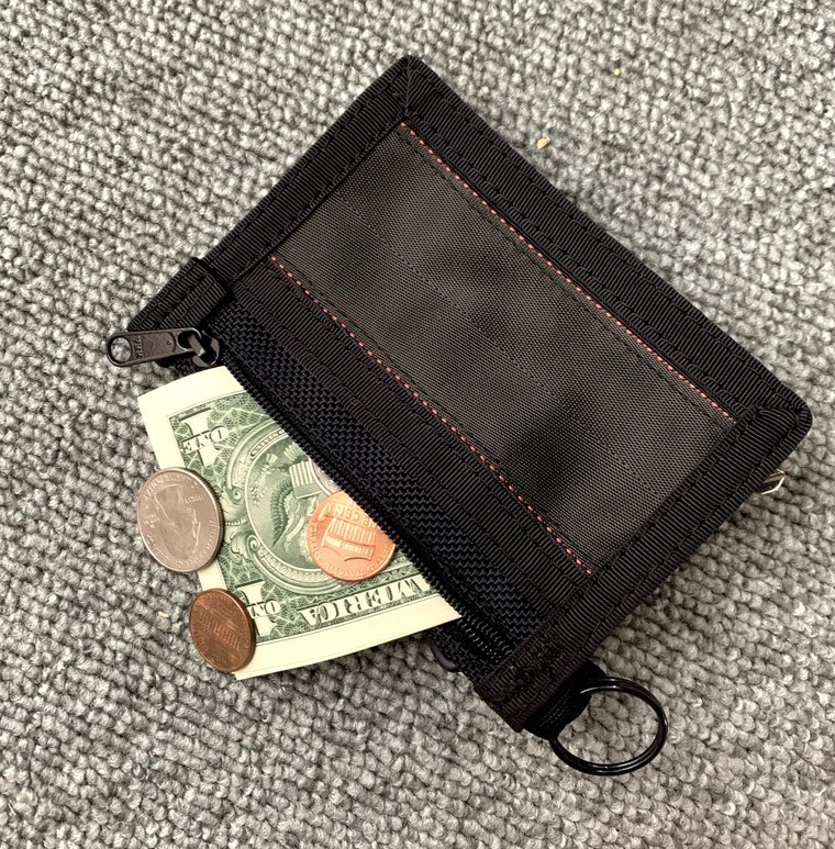 コインが収められるジッパーの付いたポケットも装備されています。折り畳めばお札も収納可能。このキーホルダーひとつで、ちょっとしたお出掛けならば、事足りちゃうってことです。