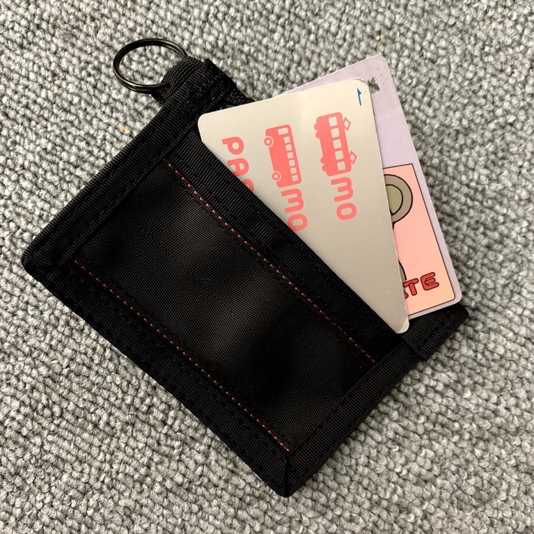 後方には、クレジットカードや交通系カードなどを複数枚入れることができるカードポケットが。コインパーキングのチケットを一時保管したり、数枚名刺を入れておいたりもできて便利。
