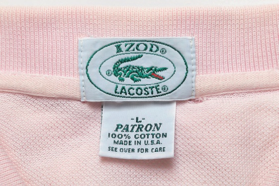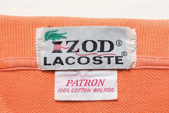 ʼ80年頃になるとワニが丸いステッチで囲われる。ちなみにPATRONとはUSサイズのLを意味する。