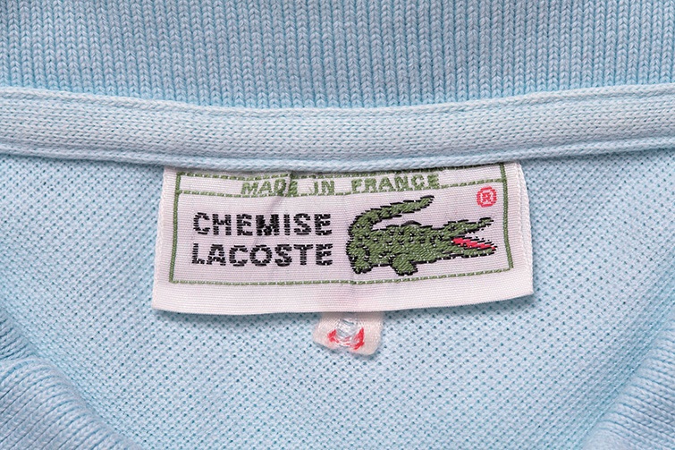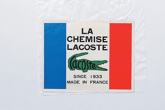 続くʼ70年代後期のタグでは、ワニが右側に寄せられ、「MADE IN FRANCE」の文字が緑に変遷。