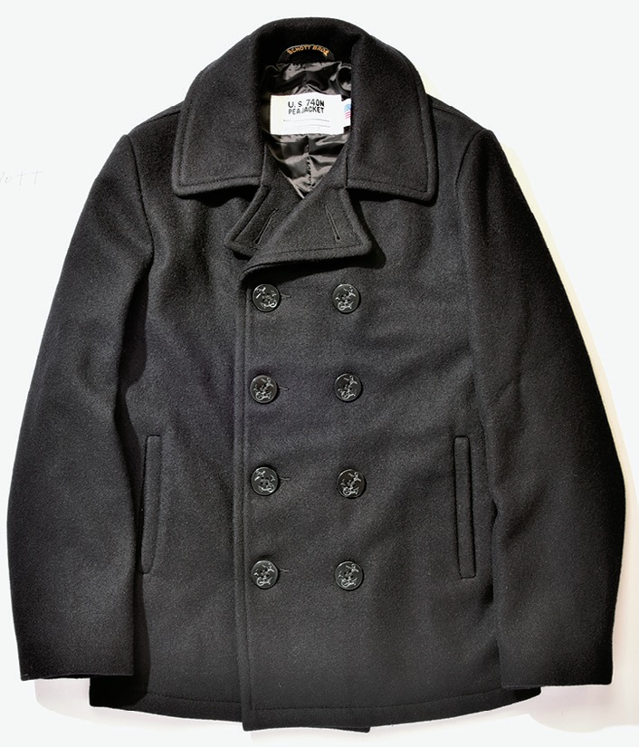 オランダ語でラシャ(厚手の織物)のコートを意味する「pij jekker(ピイ エッケル)」が語源とされるメルトン製。19世紀末頃、英海軍で採用されると戦後ヨーロッパを中心に漁師などにも愛され、第二次世界大戦にはアメリカ海軍でも防水加工を施した10ボタンのピーコートを正式採用している。ショート丈の着易さもあり、カジュアルスタイルには欠かせない存在。