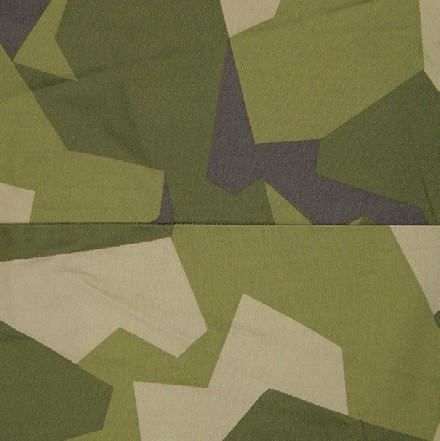 北欧の国らしいスカンジナビアンデザインを感じさせる、大柄で幾何学的な折れ線を駆使したグラフィカルな迷彩柄。