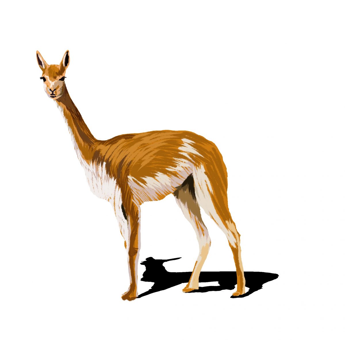 ラクダ類、ラマ属の一種で、南米西部のエクアドルからアルゼンチンへかけてのアンデス山脈の6000~7500mの高地に棲息している。ラマ属で最も小さい動物で、非常に臆病な動物であるため家畜化が困難。非常に緻密な毛を持ち、世界で最も高価な服地素材のひとつといわれる。
