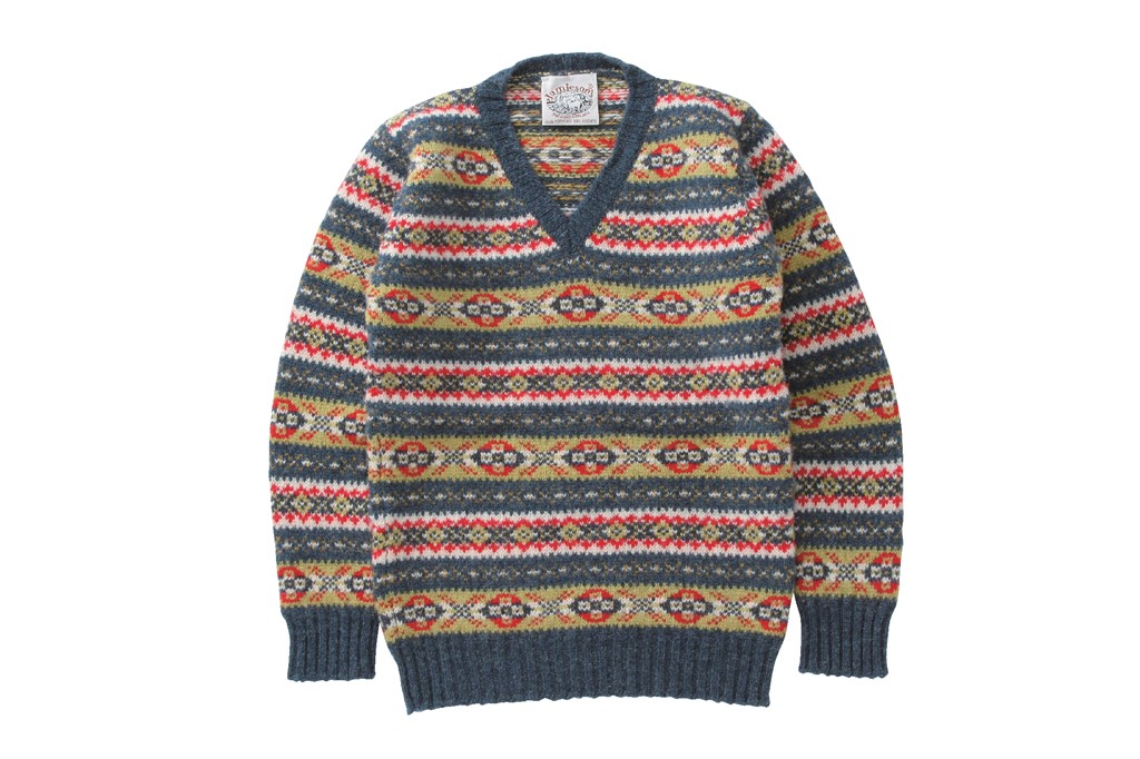 スコットランドの北方に群れるシェットランド諸島。最南端のフェア島こそが、フェアアイルセーター発祥の地であり、旧くから伝わる多色編みの技術はバイキングによりもたらされたという。8世紀以降、この一帯はバイキングの庭であり、15世紀になってスコットランドが譲り受けるまでは、ノルウェーの支配下にあった。そのため、海を隔てたフィンランドのセーターにシェットランド諸島独特の野草を使った染色を転用、地場産業として確立したといわれている。