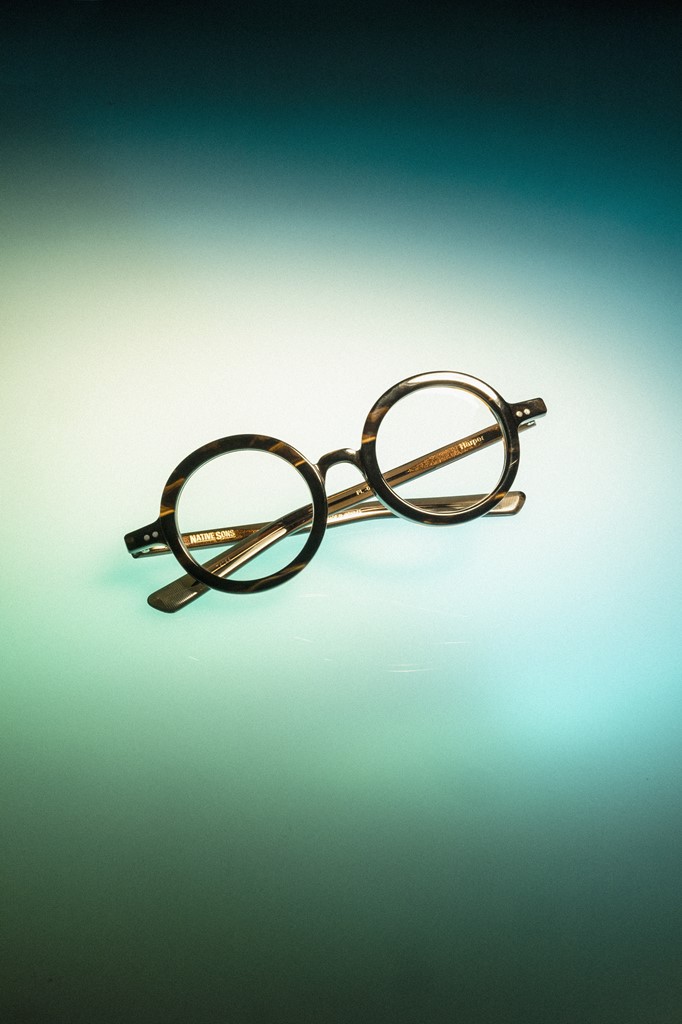 ラウンド型の[ハーパー]も、最もクラシックかつミニマムなシェイプながら、太すぎず細すぎない絶妙なフレーム幅と美しいカーブでモダンな香りさえも醸し出す意欲作だ。テンプルに通される羽模様の芯金やシャープなスクープ型のヒンジなど、パーツに至るまで自社生産にこだわった一本の魅力は色褪せない。長年愛したい眼鏡とはきっとこういうものだ。3万8500円(プライベートアイズ&トラッカーズ☎070-1577-2666)