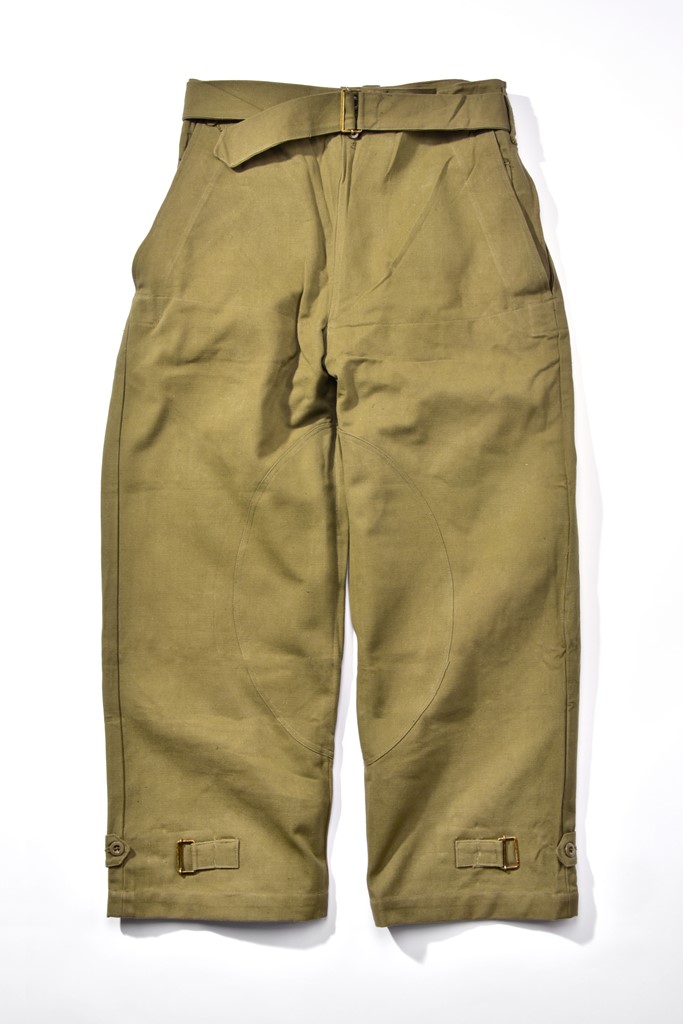 まずは編集部がいま最も穿きたいミリタリーパンツを真剣に考えた結果、挙がったのはフレンチミリタリーのモーターサイクルパンツ、[M‐35]や[M‐38]。ヴィンテージ市場でも人気が高まっている欧州モノのなかでも、タマ数が少ないアレです。デザインは良いのに正直タウンユースとして穿きこなすには要らないディテールが多すぎるって思っていた人も多いはず。