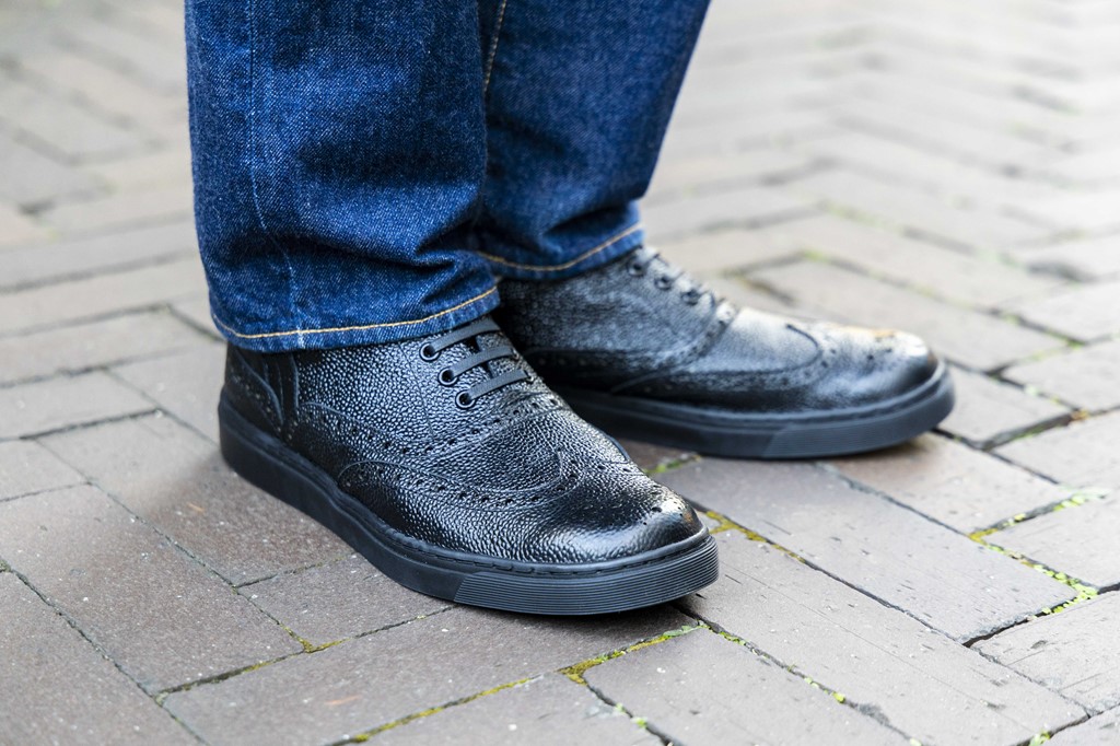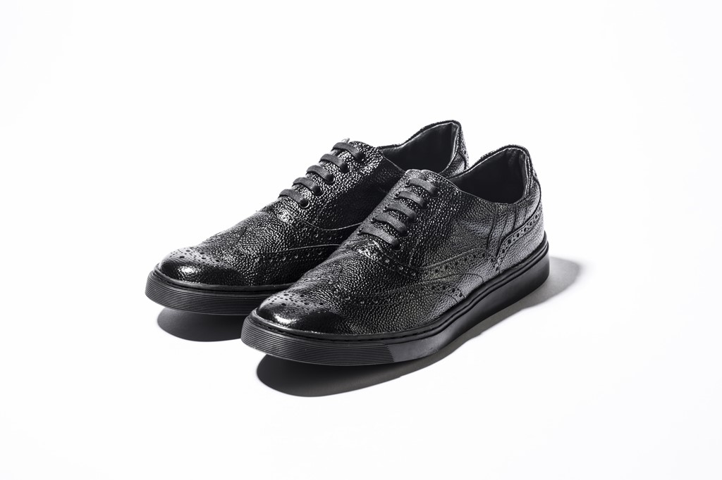 見た目はメダリオンを配した、いわゆるウイングチップの革靴。軽さや履き心地はスニーカーという、両者をいいとこ取りした[ペネレル]。型押ししたステアレザーのエレガントな表情は、まさにトラディショナルなウイングチップシューズそのもの。休日はもちろんのこと、ビジネスシーンでの装いにもすんなり馴染んでくれる一足だ(しかも楽チン!)。